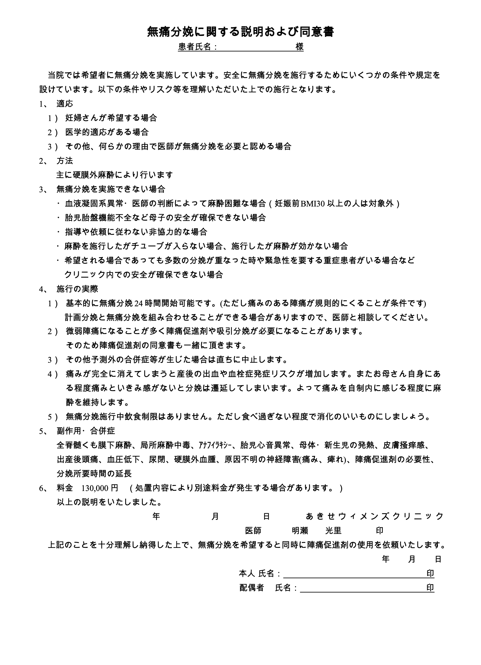 当クリニックでは休日、深夜の分娩料金の割増料金は別途加算となります。