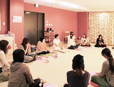 無理な姿勢や激しい動きはなく、体を伸ばしほぐしながらストレッチをしていくのでどんなかたでもこなして頂けます。また、あかちゃんの週数が違うお母さんでは動ける範囲が違うので、その場で自分に合った動きをして頂けます。